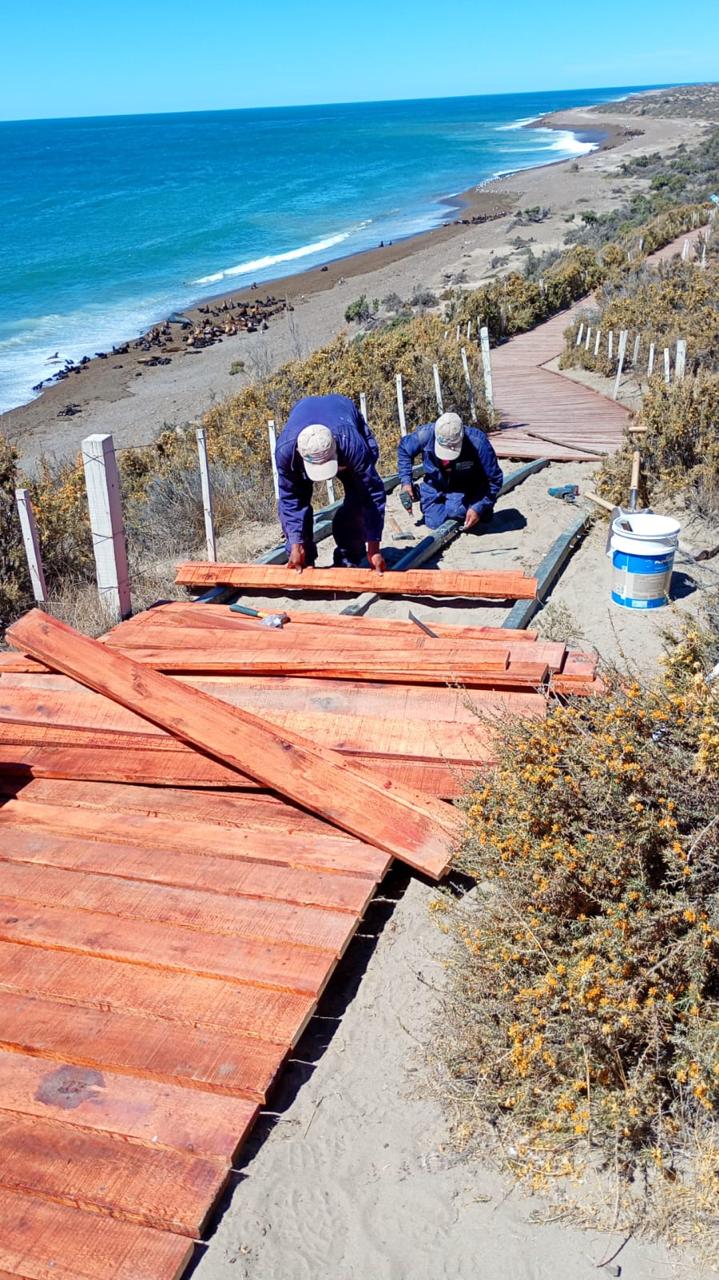 Los trabajos, desarrollados por Guardafaunas y personal de la Administradora del Área Natural Protegida Península Valdés, incluyen el reacondicionamiento integral de senderos y miradores, con tareas de pintura, recambio de maderas en pasarelas y puesta en valor de las estructuras existentes. Estas intervenciones buscan garantizar mayor seguridad para los visitantes y mejorar la circulación peatonal.
