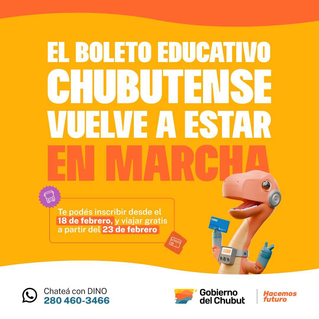 El Gobierno del Chubut informa que se encuentra abierta la inscripción al Boleto Educativo Chubutense (BECH), una herramienta destinada a garantizar el acceso al transporte público a estudiantes, docentes y auxiliares educativos de todos los niveles en la provincia.